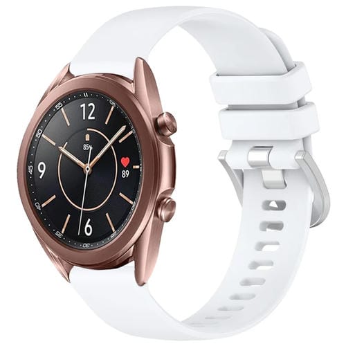 Correa de Silicona para Samsung Galaxy Watch 3 41mm con Hebilla Plateada Líquida Brillante (Blanco)