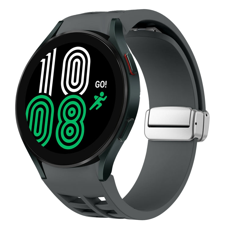 Correa de Silicona para Samsung Galaxy Watch 4 40/44mm con Hebilla Plateada Plegable Magnética (Gris Espacial)