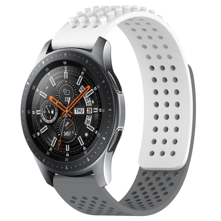 Correa de Reloj de Silicona para Samsung Galaxy Watch 46mm 22mm Agujeros Puntos 3D Transpirables (Blanco + Gris)