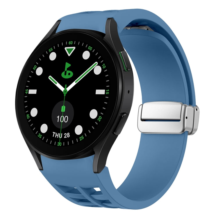Correa de Silicona para Samsung Galaxy Watch 5 Golf Edition con Hebilla Plateada Plegable Magnética (Azul)