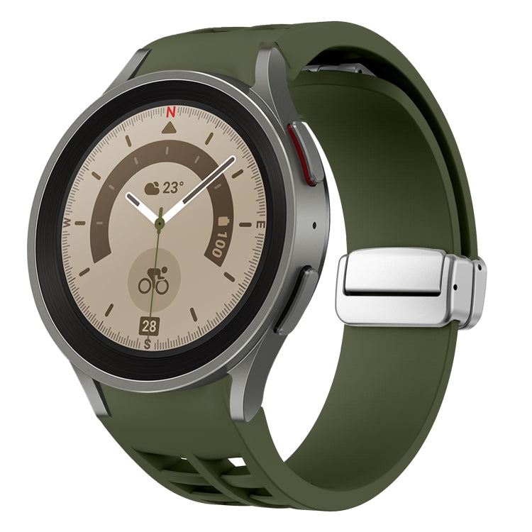 Correa de Silicona para Samsung Galaxy Watch 5 Pro 45mm Richard con Hebilla Plateada Plegable Magnética (Verde Militar)