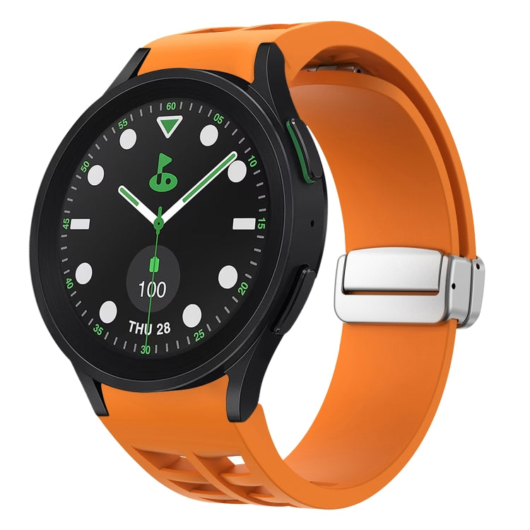 Para Samsung Galaxy Watch 5 Pro Golf Edition Richard Correa de Reloj de Silicona con Hebilla Plateada Plegable Magnética (Naranja)