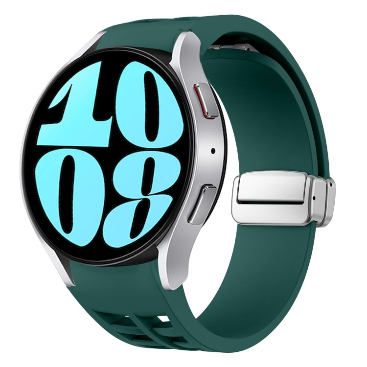 Correa de Silicona para Samsung Galaxy Watch 6 40/44mm Richard con Hebilla Plateada Plegable Magnética (Verde Oscuro)