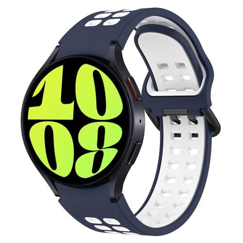 Banda de Reloj silicona para Samsung Galaxy Watch 6 40mm transpirable dos colores (Azul Medianoche + Blanco)