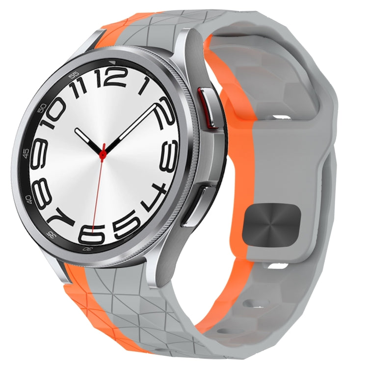 Correa de Silicona para Samsung Galaxy Watch 6 Classic 47mm con Hebilla Inversa y Textura de Fútbol (Gris Naranja)