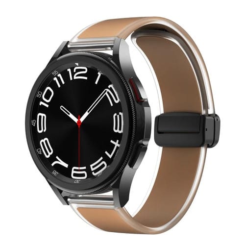 Correa de silicona para Samsung Galaxy Watch6/5/4 con hebilla negra magnética translúcida (Marrón oscuro)