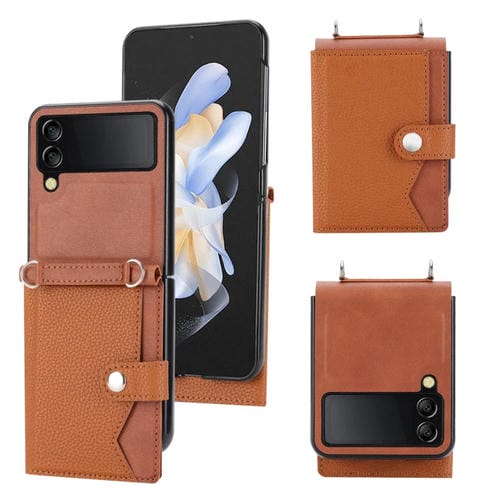 Funda para Teléfono Samsung Galaxy Z Flip4 5G con Tarjetero y Cordón Largo (Marrón)