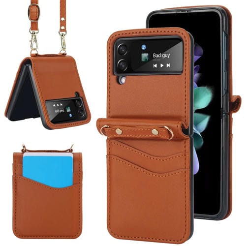 Estuche plegable para teléfono Samsung Galaxy Z Flip4 con ranuras para tarjetas duales (Marrón)