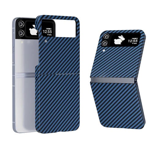 Funda Protectora Samsung Galaxy Z Flip4 Textura Fibra de Carbono con Calcomanía (Azul)