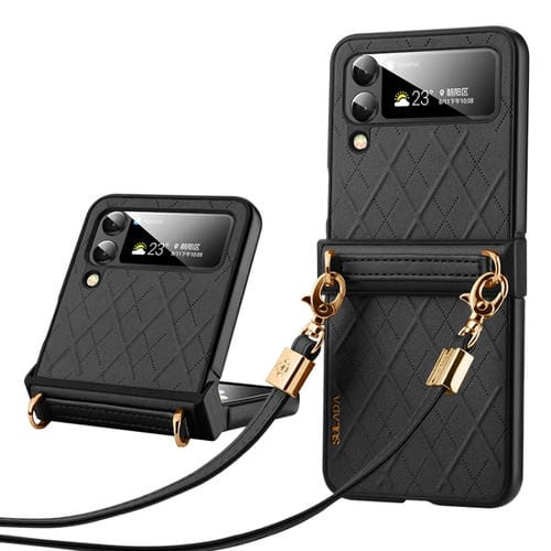 Funda para Samsung Galaxy Z Flip4 Sulada Elegante con Textura Rómbica para Teléfono Plegable (Negro)