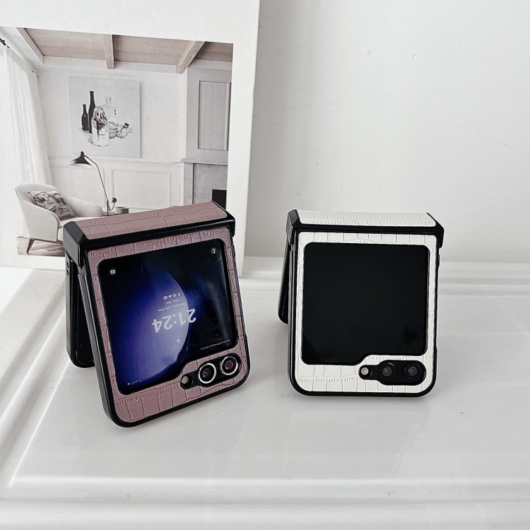 Estuche para Teléfono Plegable Samsung Galaxy Z Flip5 5G para PC con Patrón de Cocodrilo y Bisagra (Rosa Morado)