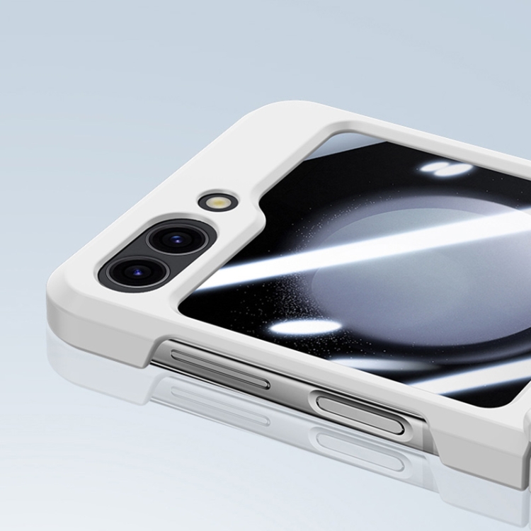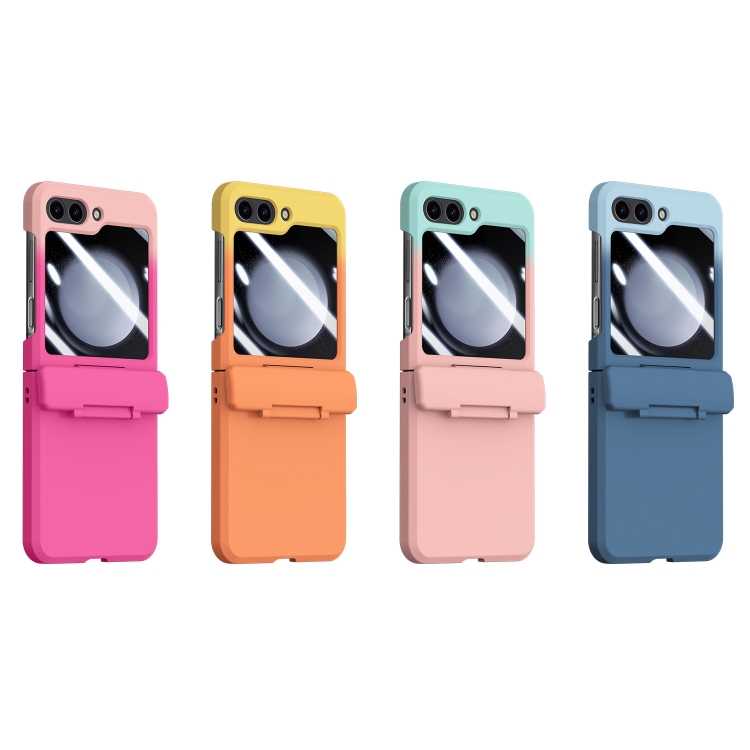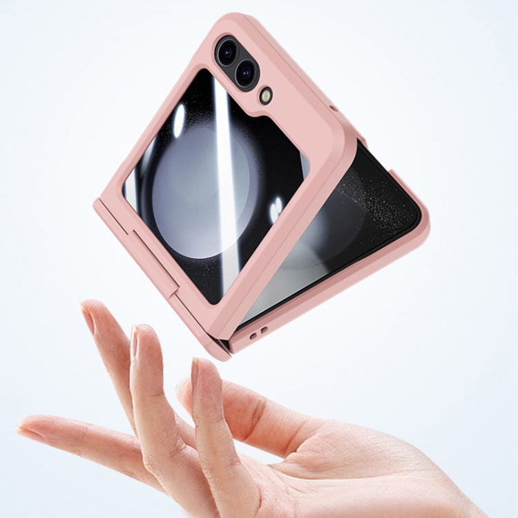 Estuche para teléfono Samsung Galaxy Z Flip5 5G PC Skin Feel con eje medio plegable integrado (Rosa Cian)