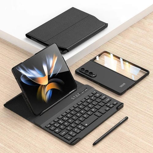 • 1x Estuche de Cuero con Teclado Bluetooth Plegable Magnético para Samsung Galaxy Z Fold4 5G (Fibra de Carbono)