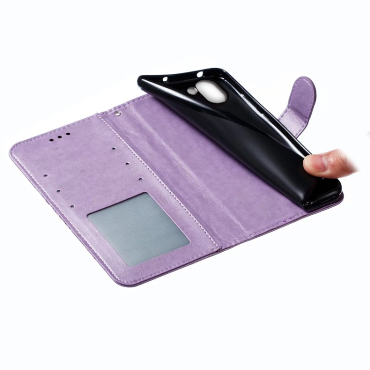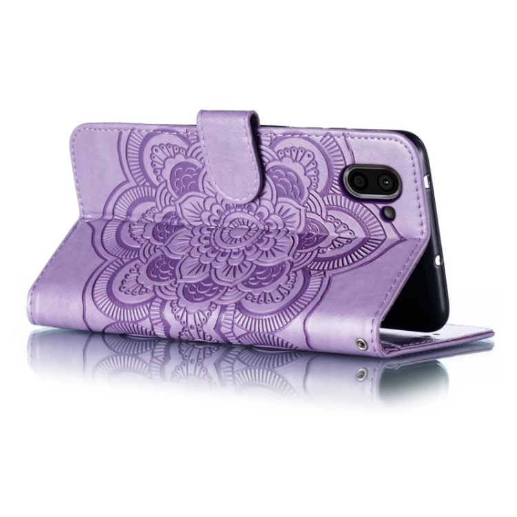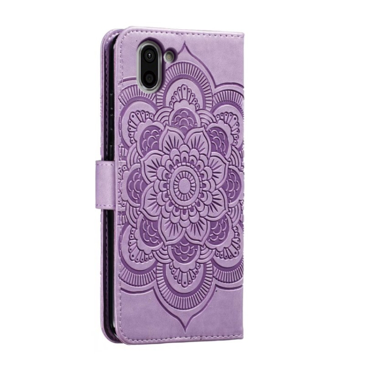 Funda de Cuero para Sharp Aquos R2 Sun Mandala con Patrón en Relieve (Púrpura)
