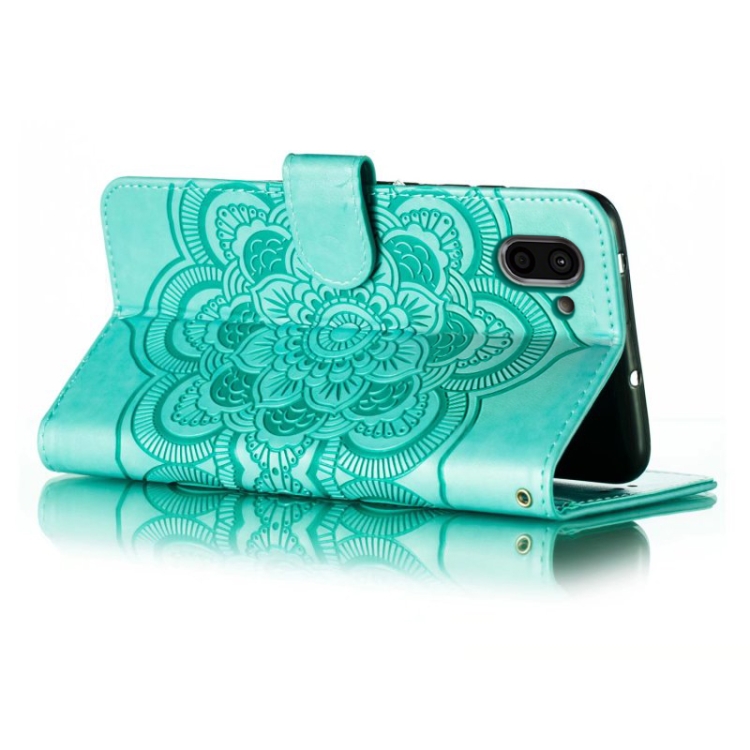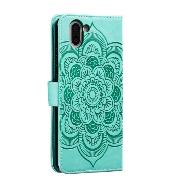 Funda de Cuero para Sharp Aquos R2 Sun Mandala con Patrón en Relieve (Verde)