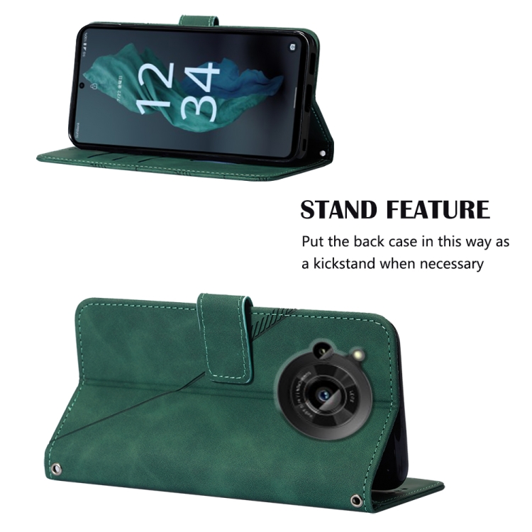 Funda de Cuero para Sharp Aquos R7 P7 Crossbody 3D con Tapa En Relieve (Verde Oscuro)