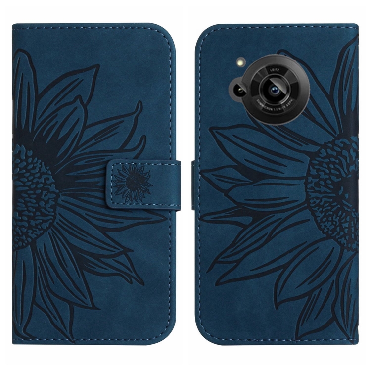 Funda Flip de Cuero para Sharp Aquos R7 / P7 con Cordón y Patrón Sun Flower (Azul Tinta)