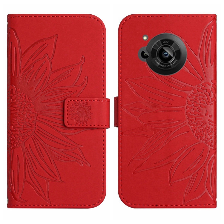 Funda Flip de Cuero para Sharp Aquos R7 P7 con Cordón y Diseño Sun Flower (Rojo)