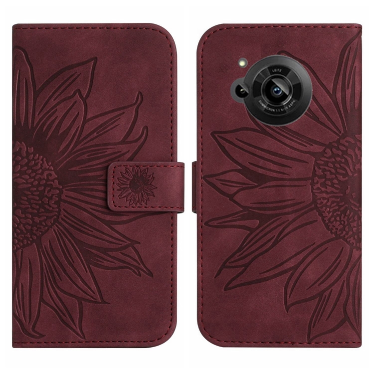Funda Flip de Cuero para Sharp Aquos R7 / P7 con Cordón y Diseño Sun Flower (Rojo Vino)