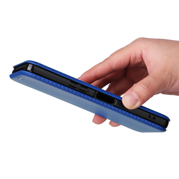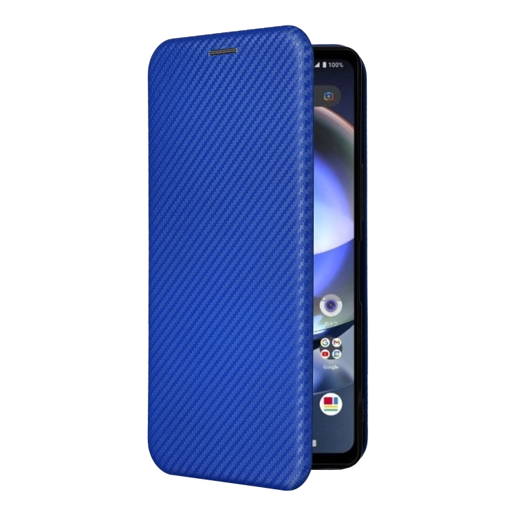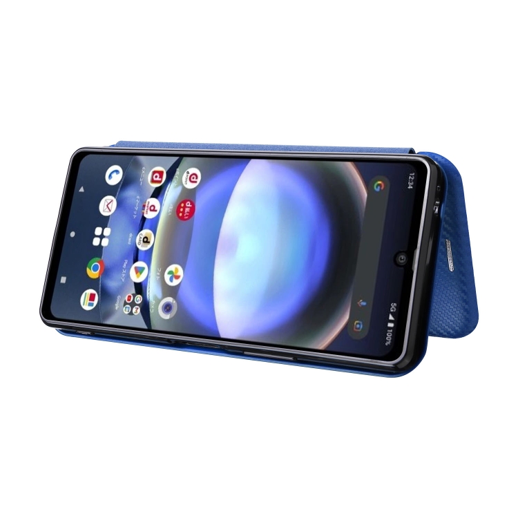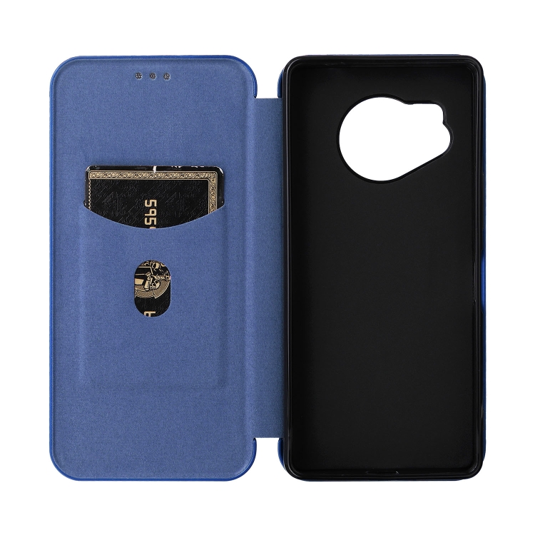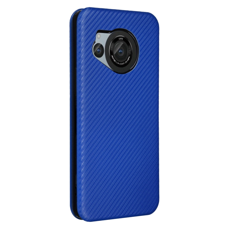 Funda de Cuero para Sharp Aquos R8 con Tapa de Fibra de Carbono (Azul)