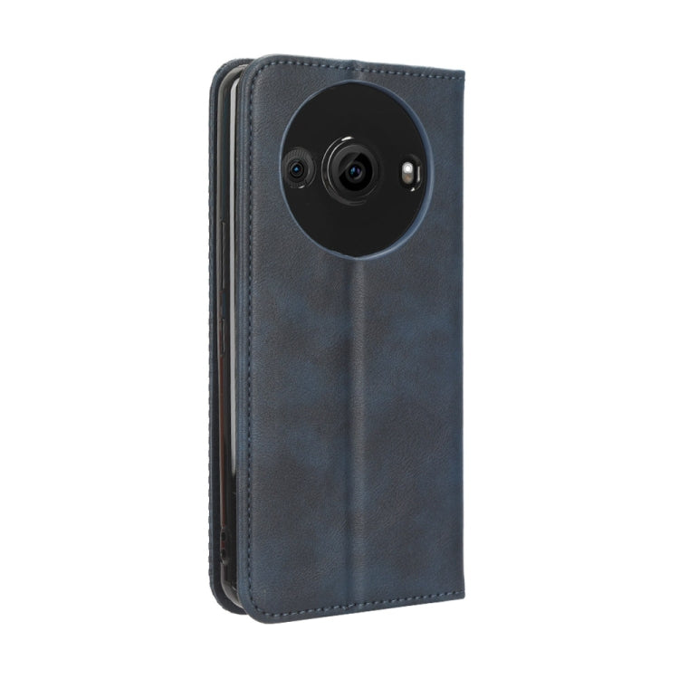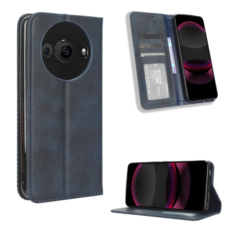 Funda de Cuero para Sharp Aquos R8 Pro con Hebilla Magnética y Textura Retro (Azul)