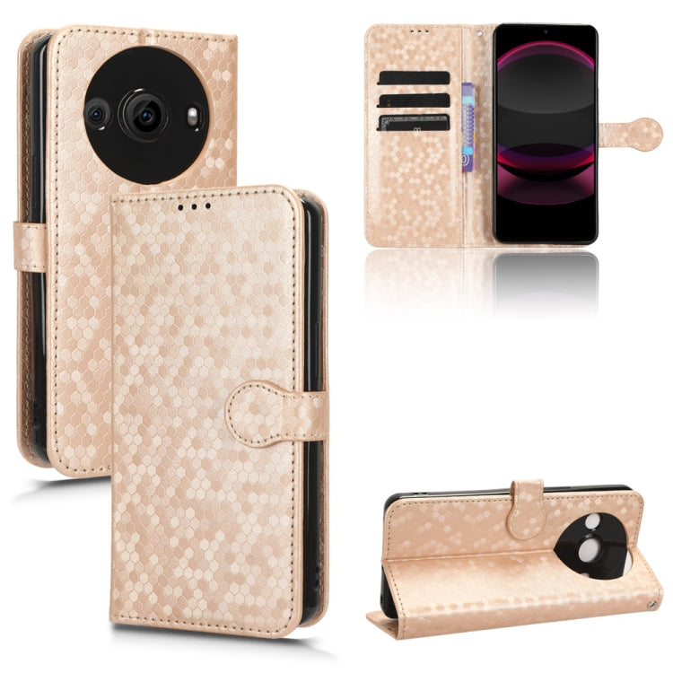 Funda de Cuero para Sharp Aquos R8 Pro Honeycomb Dot Texture (Oro)