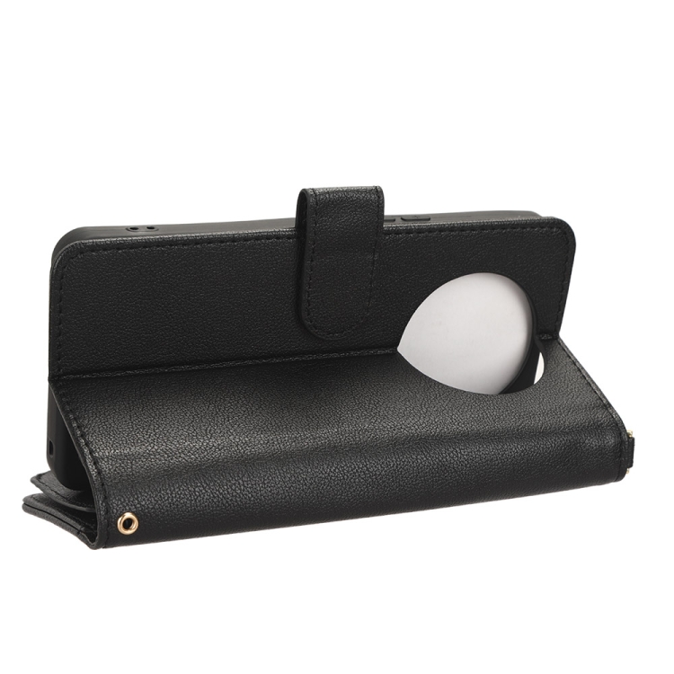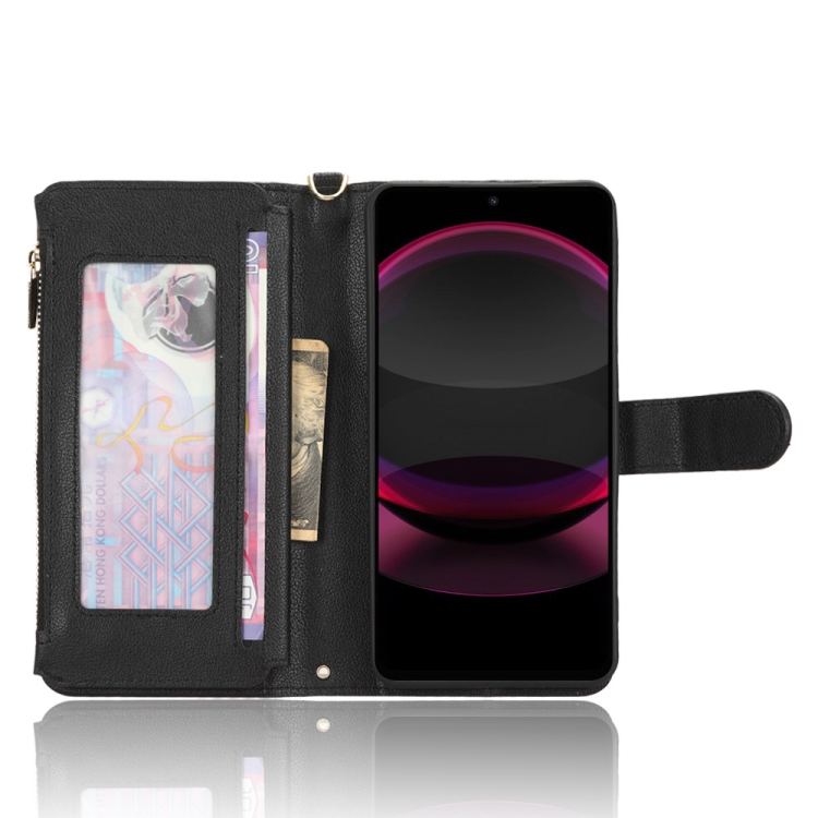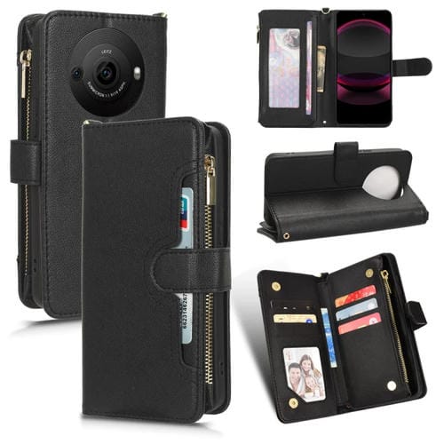 Funda de Cuero Sharp Aquos R8 Pro Litchi Textura Cremallera para Teléfono (Negro)