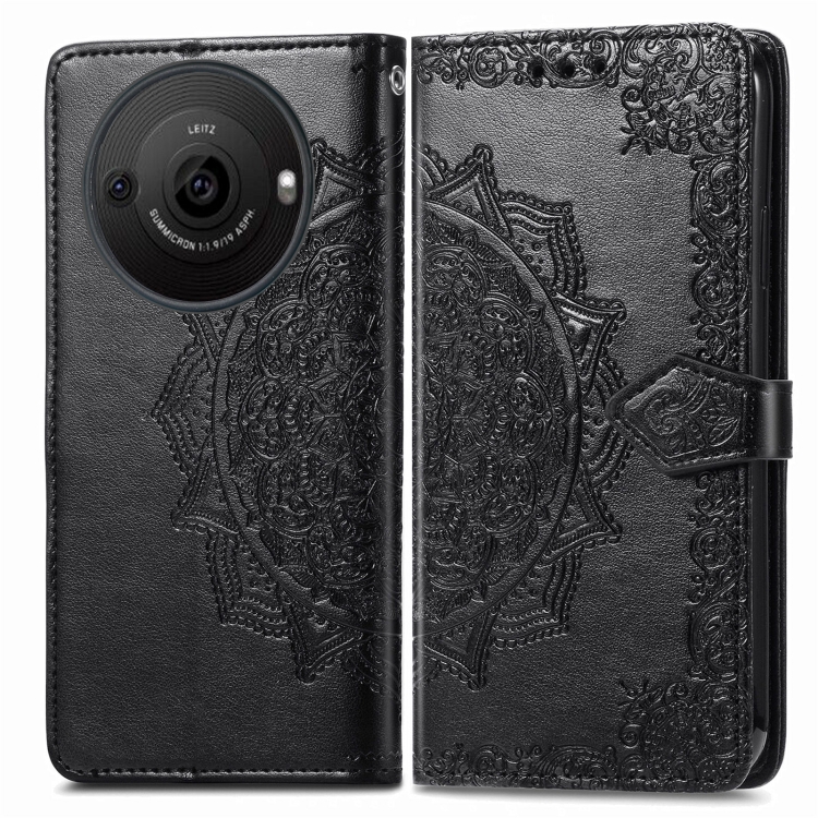 Funda de Cuero para Sharp Aquos R8 Pro Mandala Flower en Relieve (Negro)