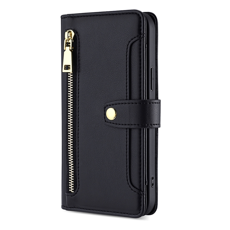 Funda de Cuero para Sharp Aquos R8 Sh-52D Lite con Textura Sheep y Cremallera (Negro)
