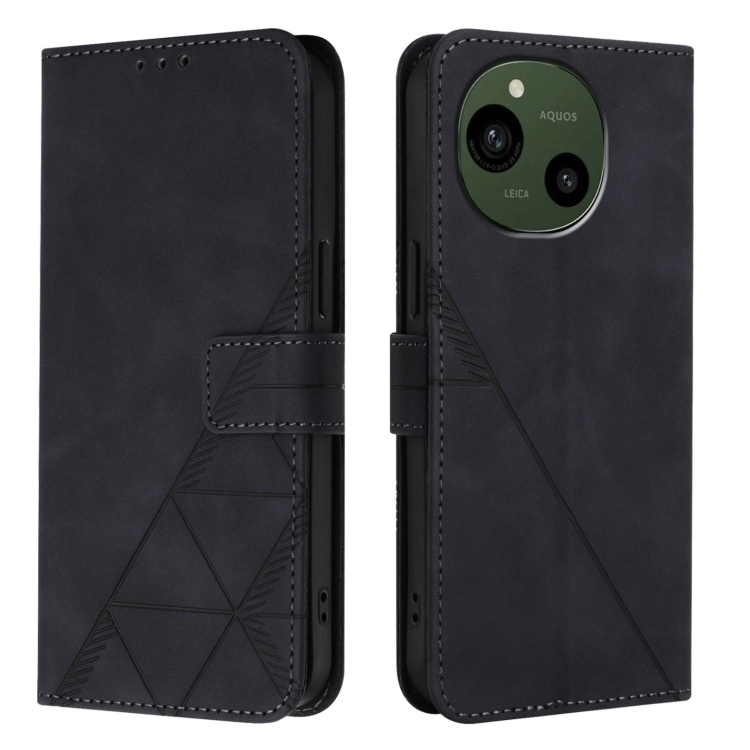 Funda de Cuero para Sharp Aquos R9 Crossbody con Tapa En Relieve 3D (Negro)