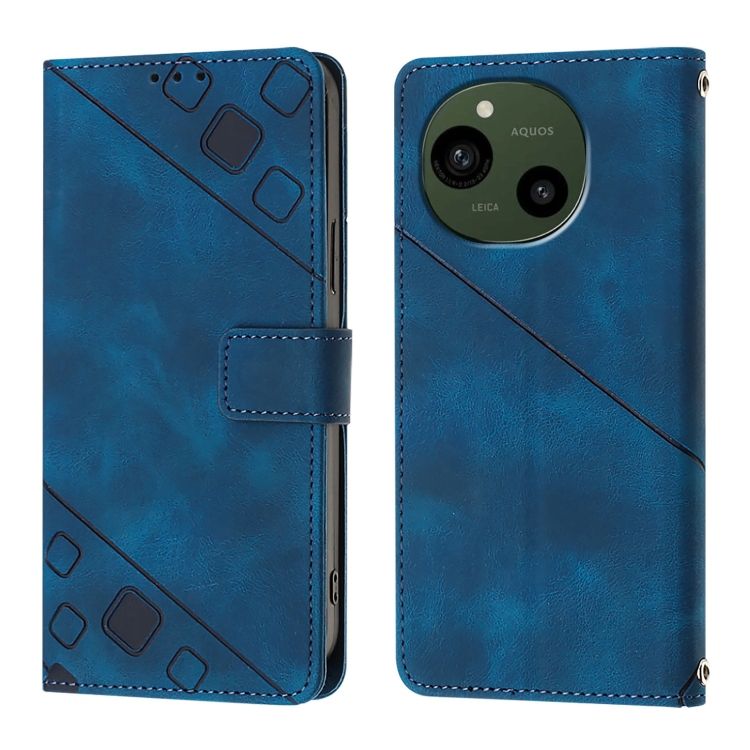 Funda de Cuero para Sharp Aquos R9 Skin Feel en Relieve (Azul)