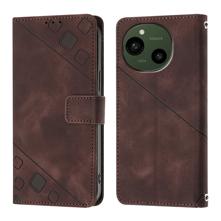 Funda de Cuero para Sharp Aquos R9 Skin Feel Teléfono En Relieve (Marrón)