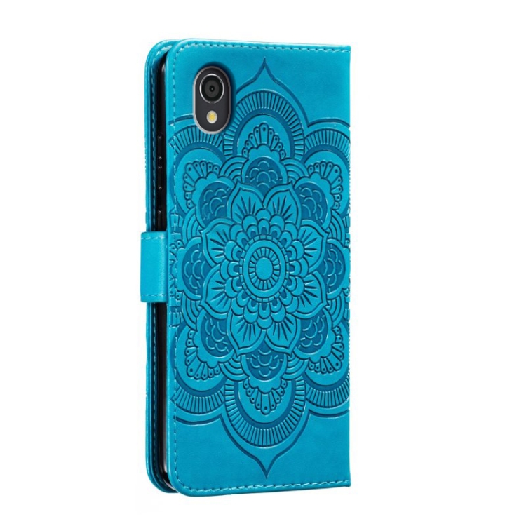 Funda de Cuero para Sharp Aquos Sense2 con Patrón en Relieve (Azul)
