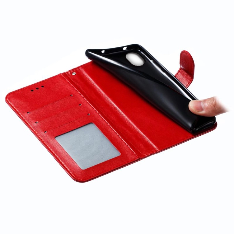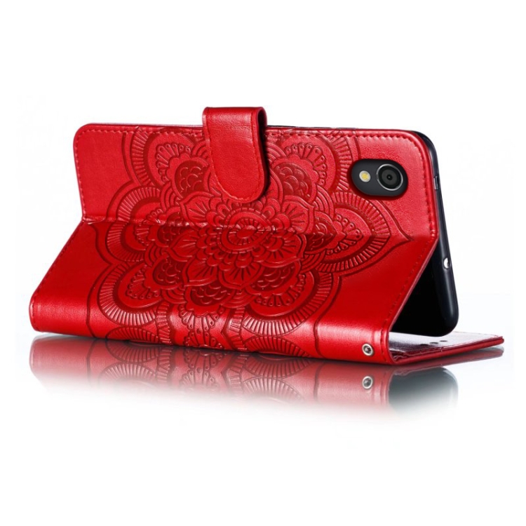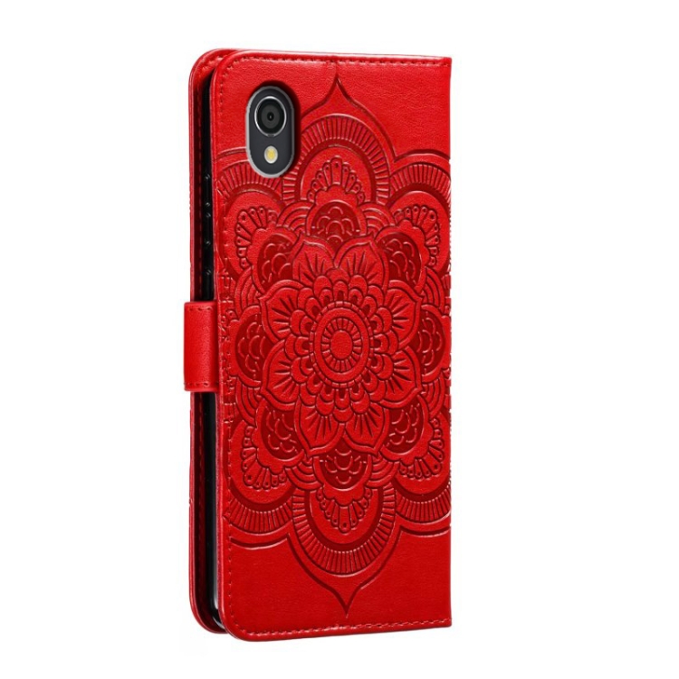 Funda de Cuero para Sharp Aquos Sense2 con Patrón En Relieve Sun Mandala (Rojo)