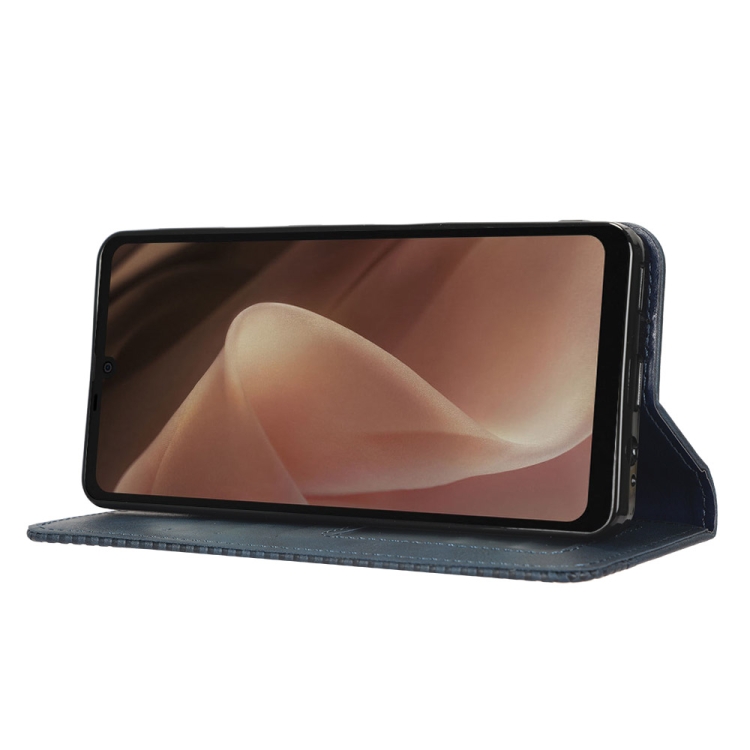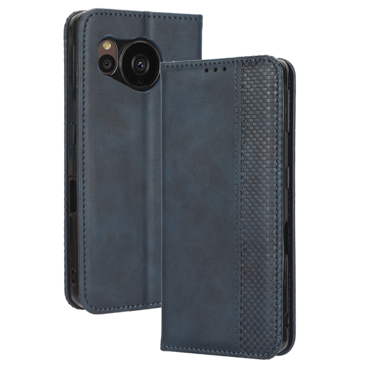 Funda de Cuero para Sharp Aquos Sense7 Plus con Hebilla Magnética y Textura Retro (Azul)