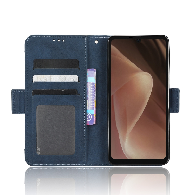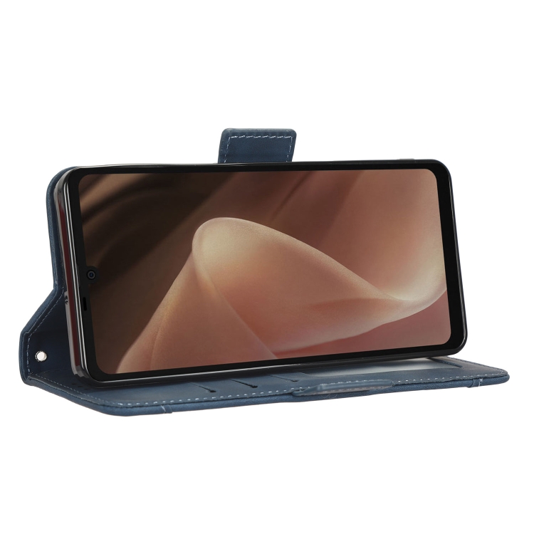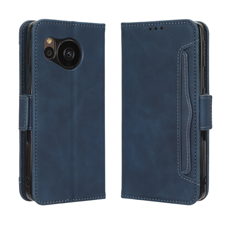 Funda de Cuero para Sharp Aquos Sense7 Plus Skin Feel con Ranuras para Tarjetas (Azul)