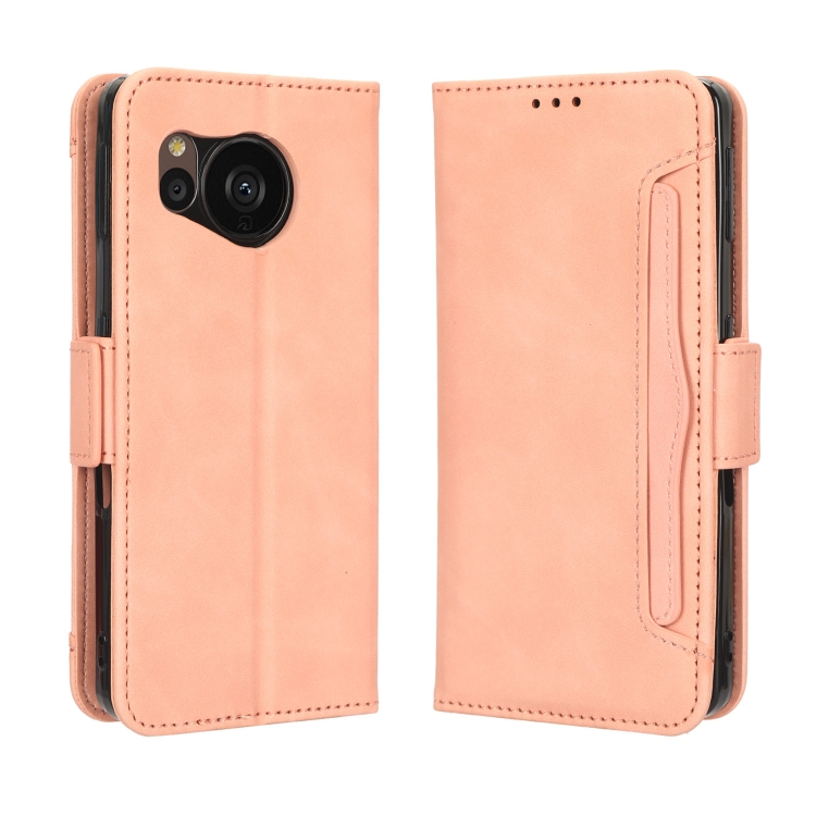Funda de Cuero para Sharp Aquos Sense7 Plus con Textura Skin Feel y Ranuras para Tarjetas (Rosa)