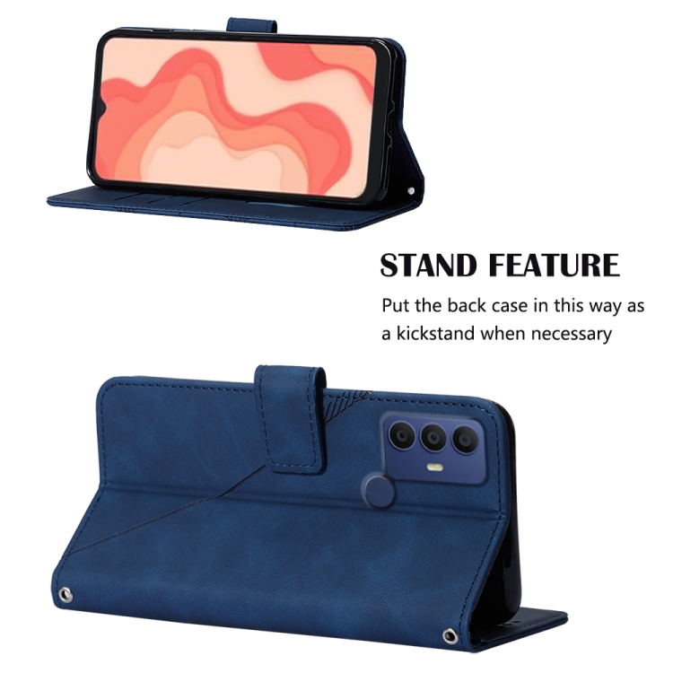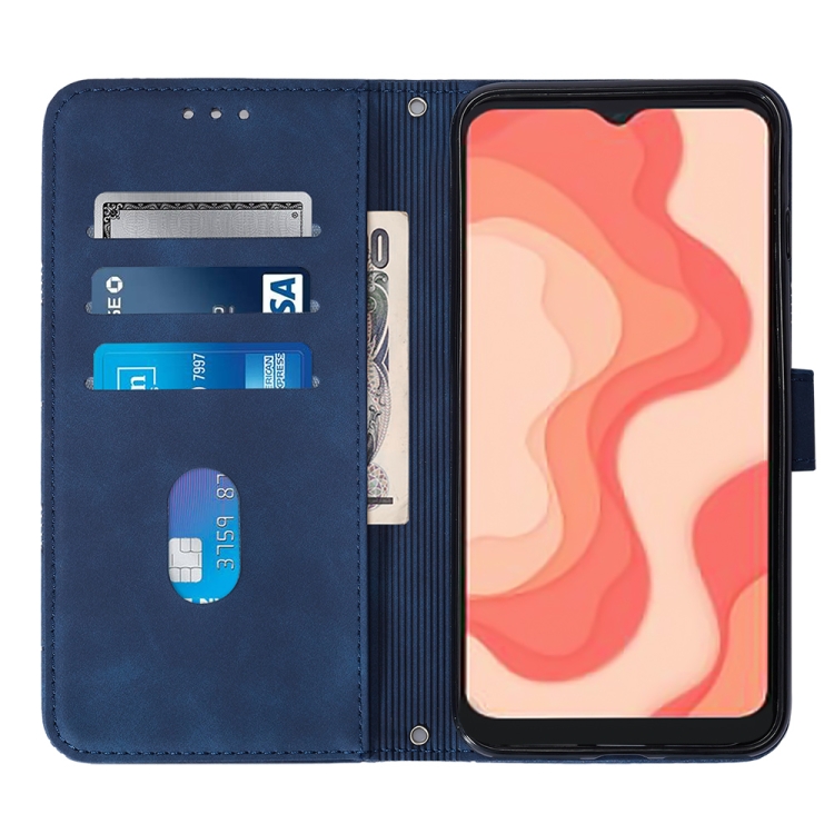 Funda de Cuero para Sharp Aquos V6 Plus y V6 Crossbody 3D con Tapa en Relieve (Azul)