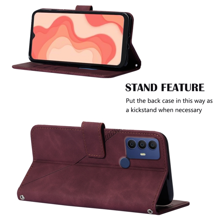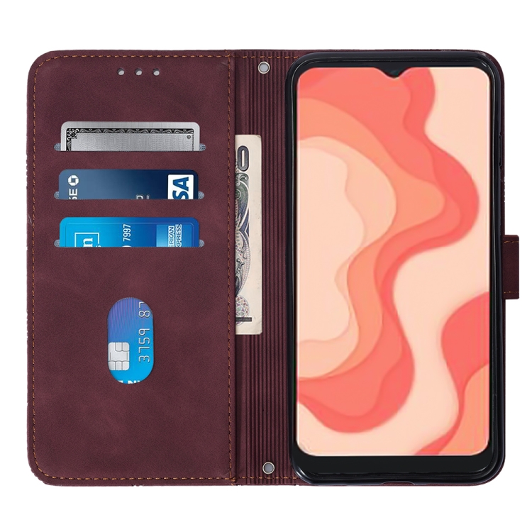 Funda de Cuero para Sharp Aquos V6 Plus y V6 Crossbody 3D con Tapa en Relieve (Rojo Vino)
