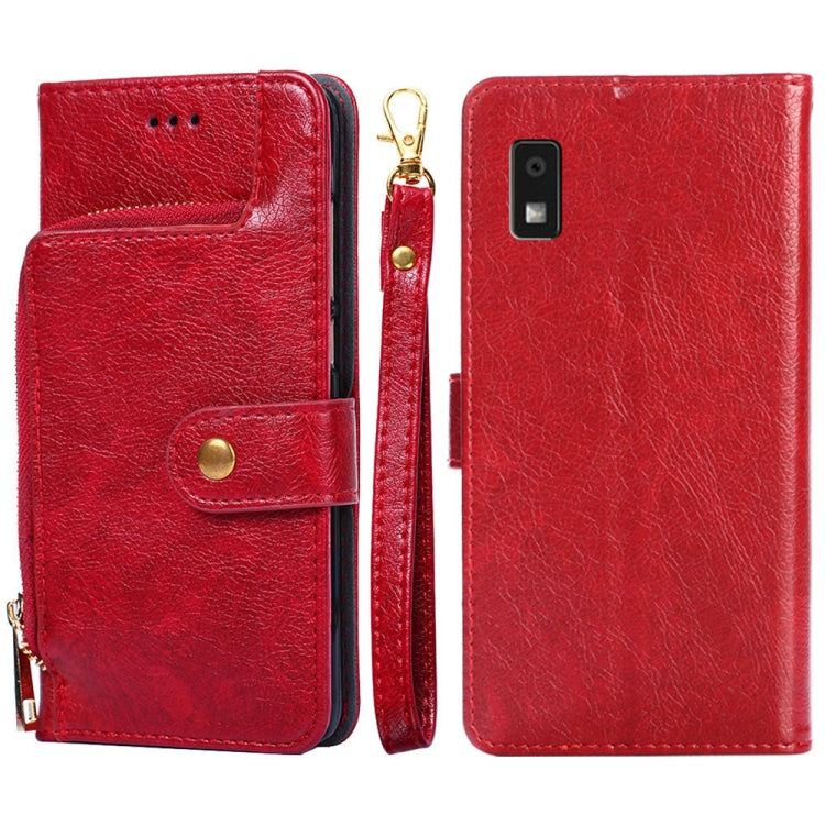 Funda de Cuero con Cremallera para Sharp Aquos Wish 3 (Rojo)