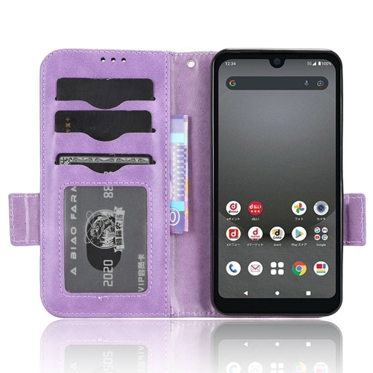 Funda de Cuero para Sharp Aquos Wish 3 con Patrón de Triángulo Simétrico (Púrpura)