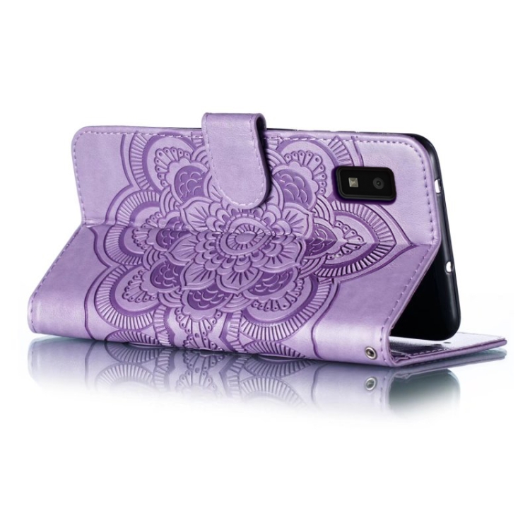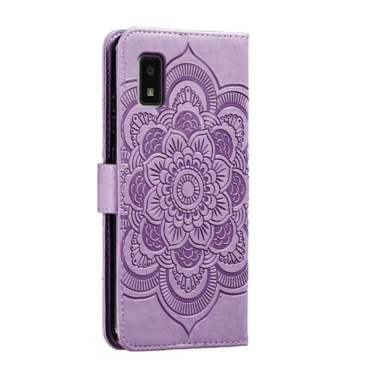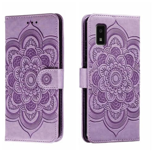 Funda de Cuero para Sharp Aquos Wish con Patrón En Relieve Sun Mandala (Púrpura)