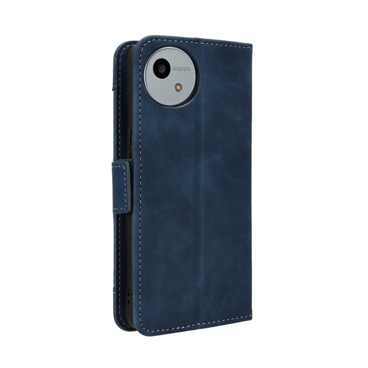 Funda de Cuero para Sharp Aquos Wish4 con Textura Skin Feel y Ranuras para Tarjetas (Azul)