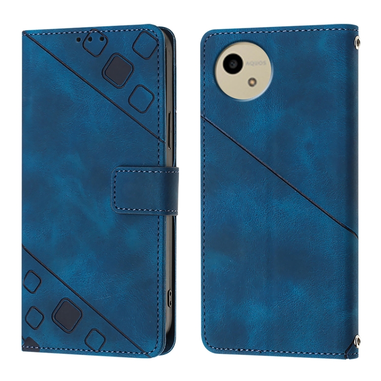 Funda de Cuero para Sharp Aquos Wish4 Skin Feel en Relieve (Azul)