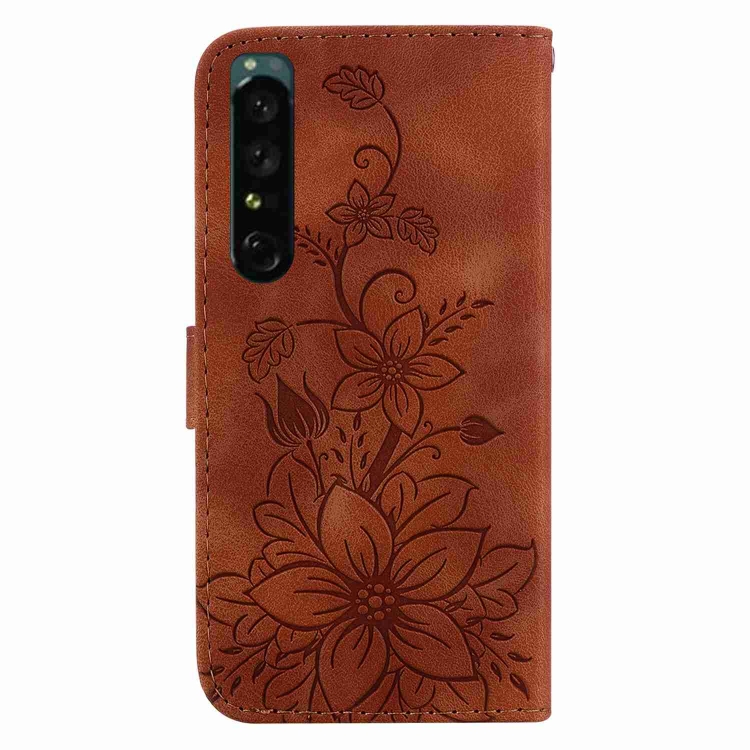 Funda de Cuero En Relieve para Sony Xperia 1 IV Lily (Marrón)