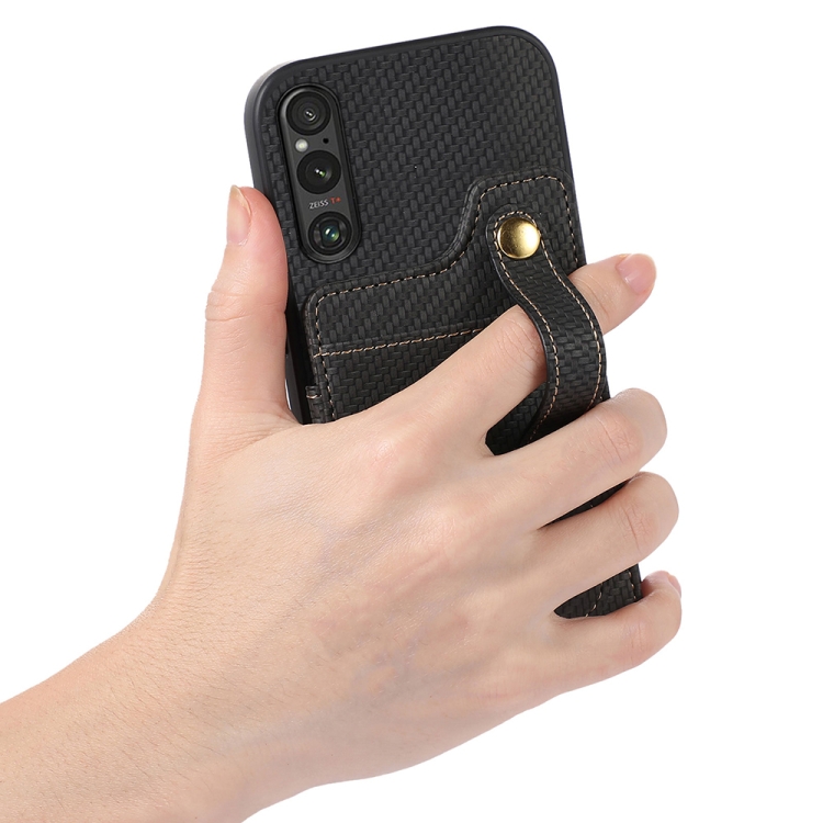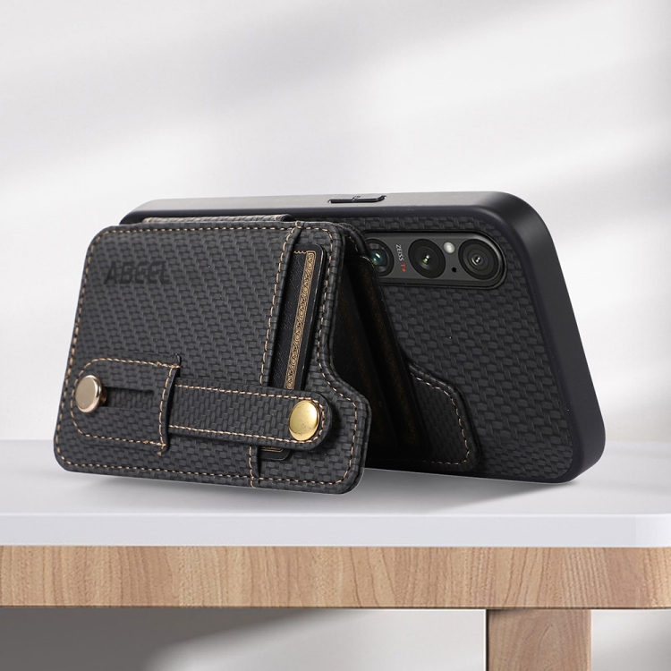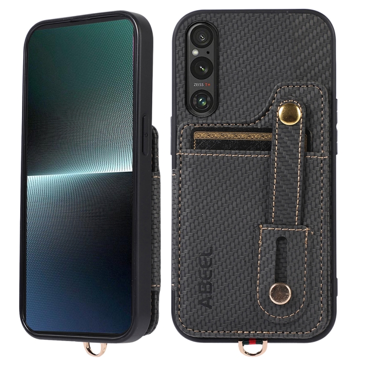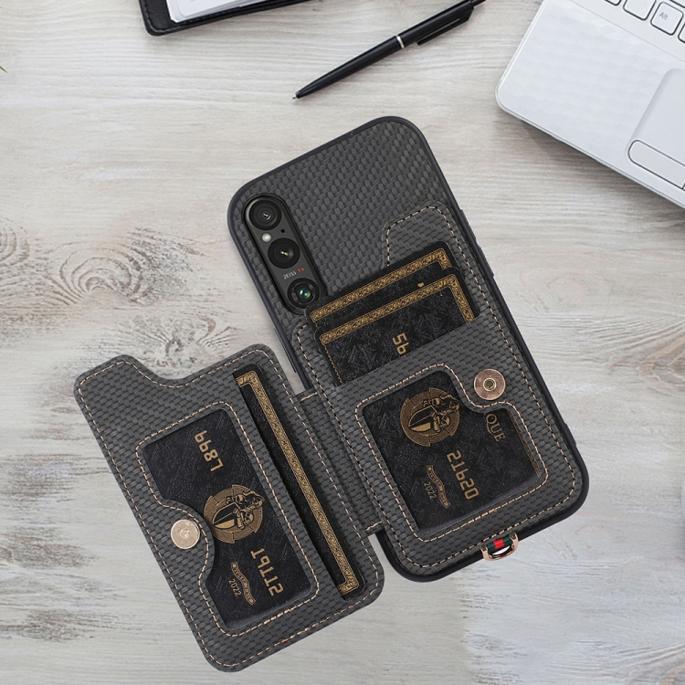 Funda para Sony Xperia 1 V Abeel con Tarjetero RFID de Fibra de Carbono (Negro)