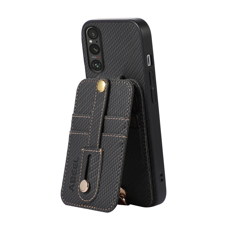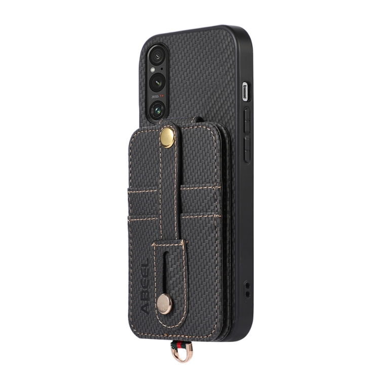 Funda para Sony Xperia 1 V Abeel con Tarjetero RFID de Fibra de Carbono (Negro)