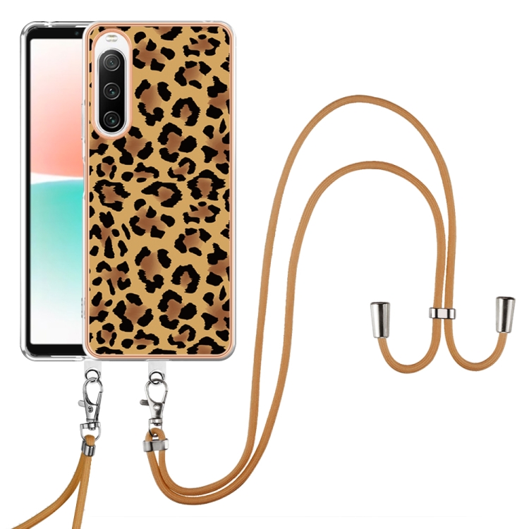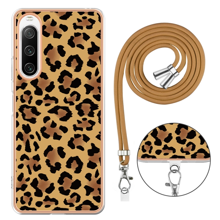 Estuche para Sony Xperia 10 IV IMD Doble Cara con Galvanoplastia y Cordón (Leopardo)
