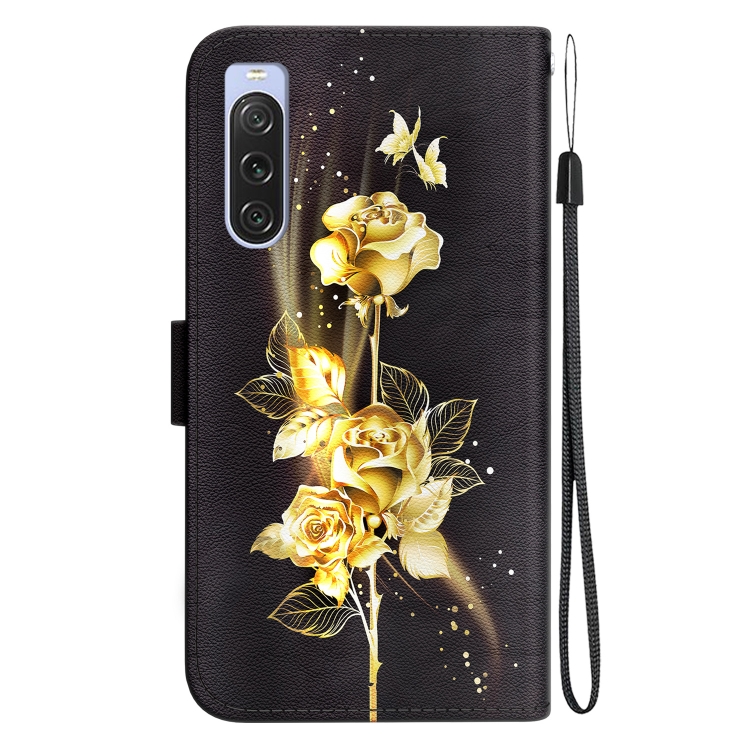 Estuche de Cuero para Sony Xperia 10 V (2023) con Dibujo Coloreado y Textura de Cristal (Mariposa Dorada Rosa)