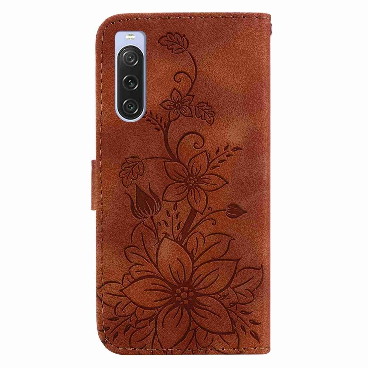Funda de Cuero En Relieve para Sony Xperia 10 V Lily (Marrón)